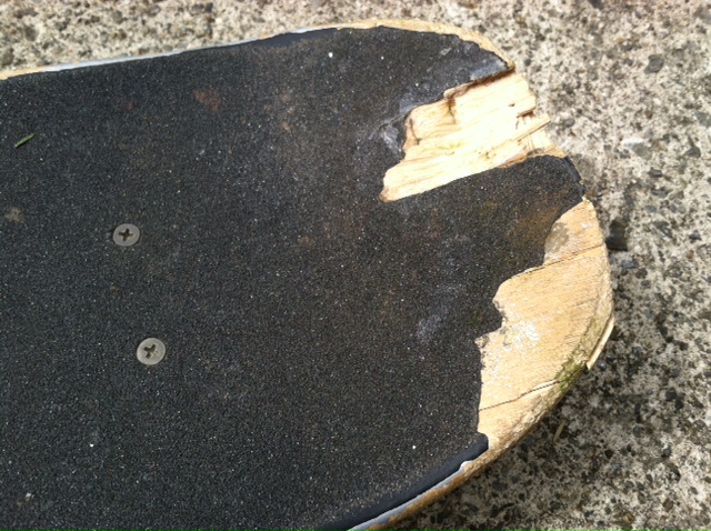 Broken Skateboard. Failed healing of a split nose. Photo by Katelyn Avery.